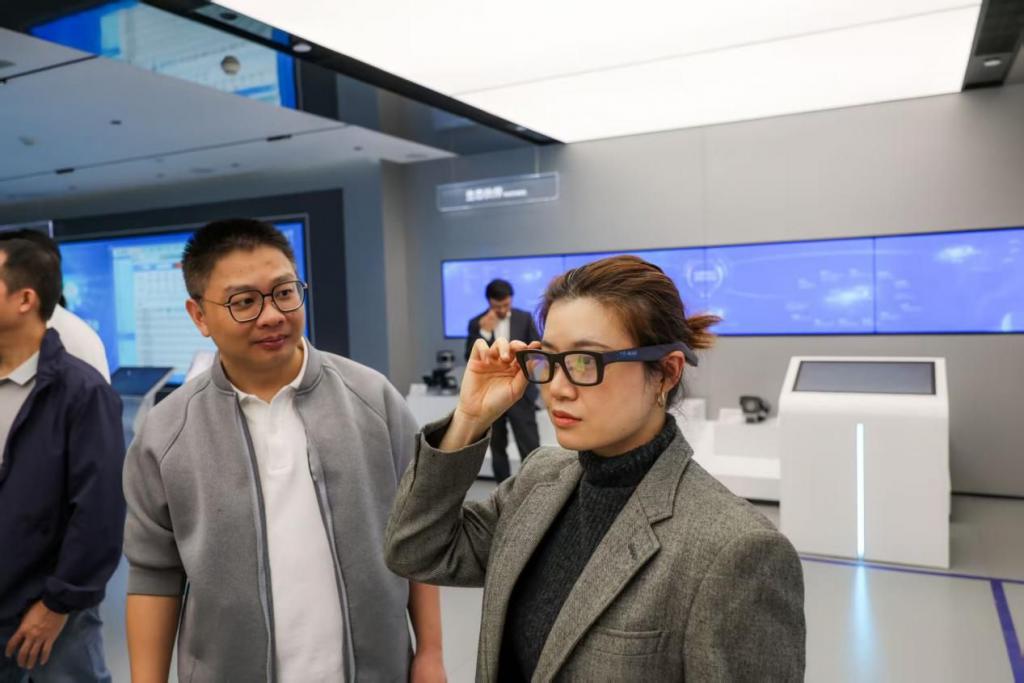 圖說:與會人員饒有興致地體驗 AI 眼鏡